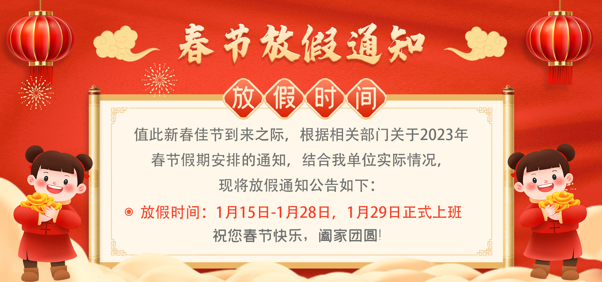 關(guān)于公司2023年春節(jié)放假通知