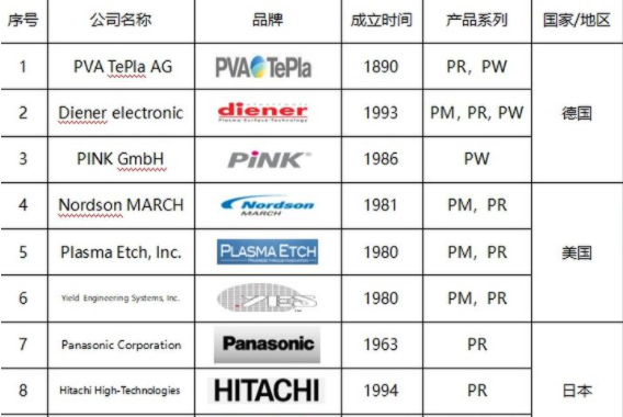 不過近幾年,國內(nèi)等離子清洗機(jī)發(fā)展很快,因?yàn)檫M(jìn)口機(jī)器價(jià)格貴,如果國產(chǎn)機(jī)可以達(dá)到同樣的效果,國內(nèi)的公司當(dāng)然愿意選擇國產(chǎn)品牌,東信的銷售經(jīng)理常年在外面拜訪客戶,根據(jù)他們對這些半導(dǎo)體企業(yè)的走訪,發(fā)現(xiàn)國內(nèi)半導(dǎo)體行業(yè)用的多的品牌包括下面的這一些,我整理出來了一個(gè)表格,給大家做做參考